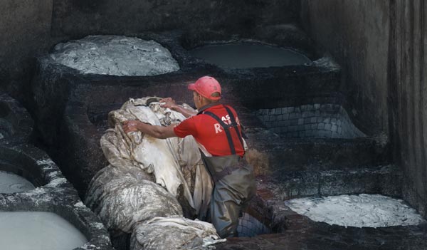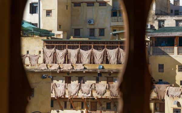 Rooftops and walls are covered with skins hanging out to dry. Foul-smelling effluent from the leather industry pours continuously into the Fez River, transforming it into a filthy city sewer.